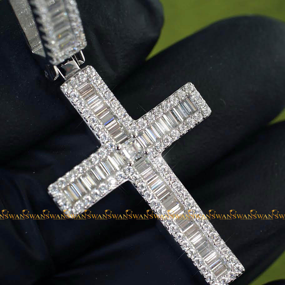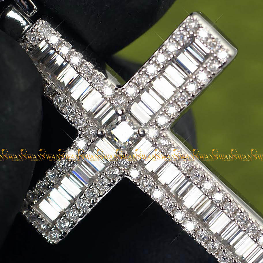 Precioso corte redondo y Baguette VVs Clarity Lab Grown Diamonds Iced Out Hip Hop 10Kt Colgante de Cruz de Oro Blanco en tamaño personalizado