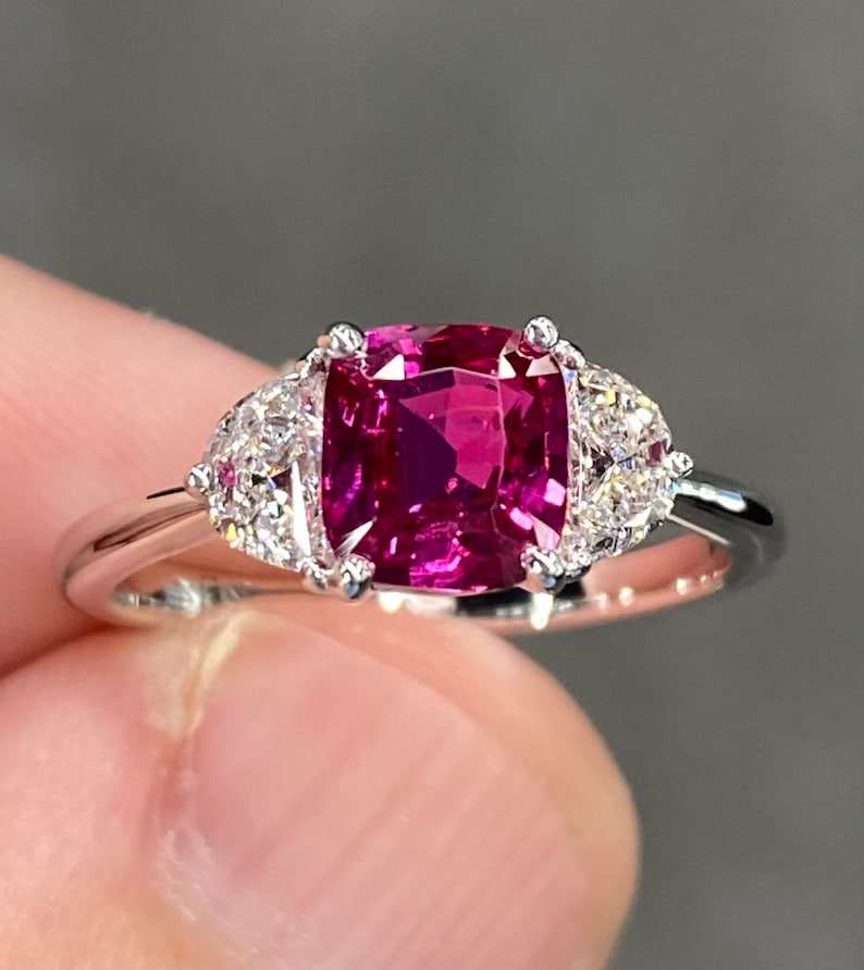 Palabra clave:Anillo de rubí rosado de la astilla 925 hecho