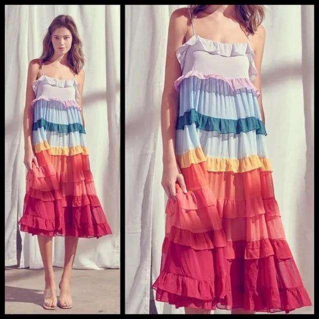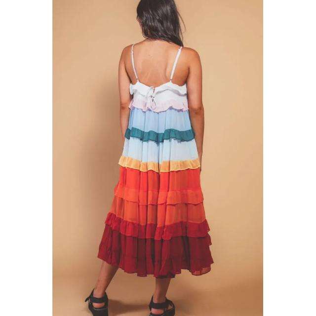 Precioso Vestido Maxi con Volantes en Capas, Femenino, con Múltiples Capas de Volantes, Forro Completo de Algodón, Ecológico y Transpirable para Mujer