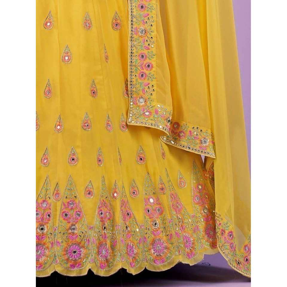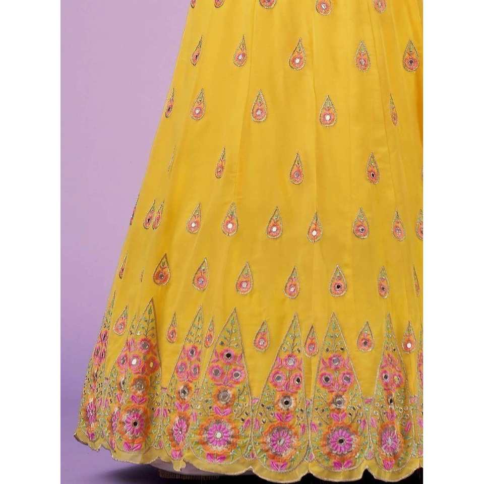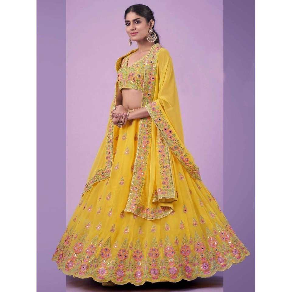 Precioso Lehenga Choli de Georgette con Hilo Amarillo para Bodas