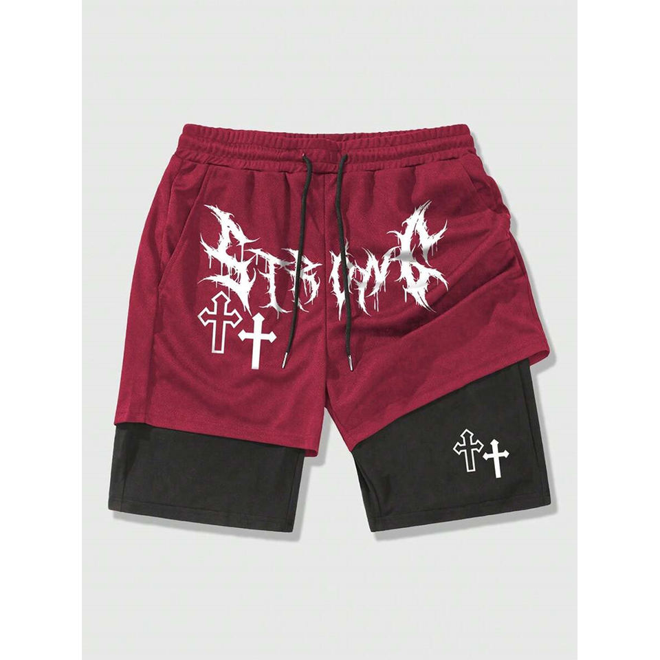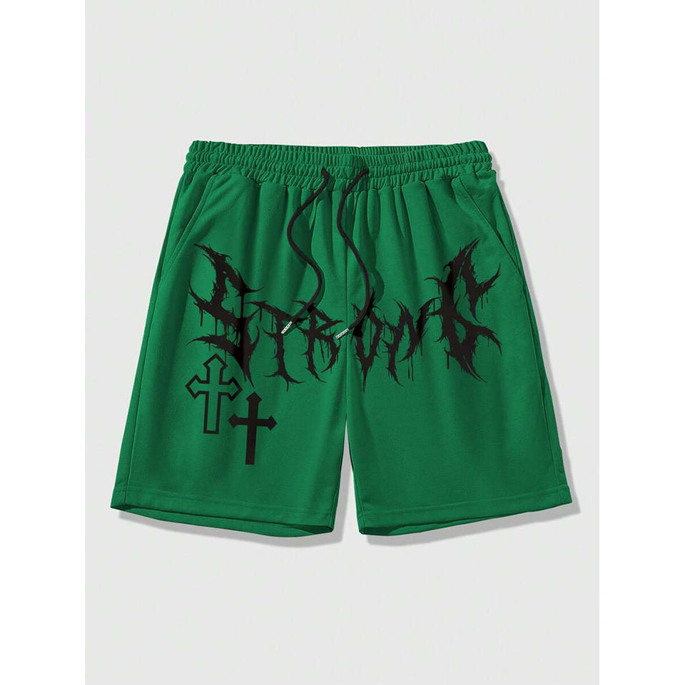 Pantalones cortos con cordón transpirables con estampado gótico para hombre