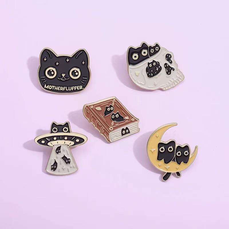 Broche esmaltado gótico, joyería, libro de gato mágico, broche de dibujos animados de gatito Punk negro, insignia de solapa para mochila, ropa o regalo