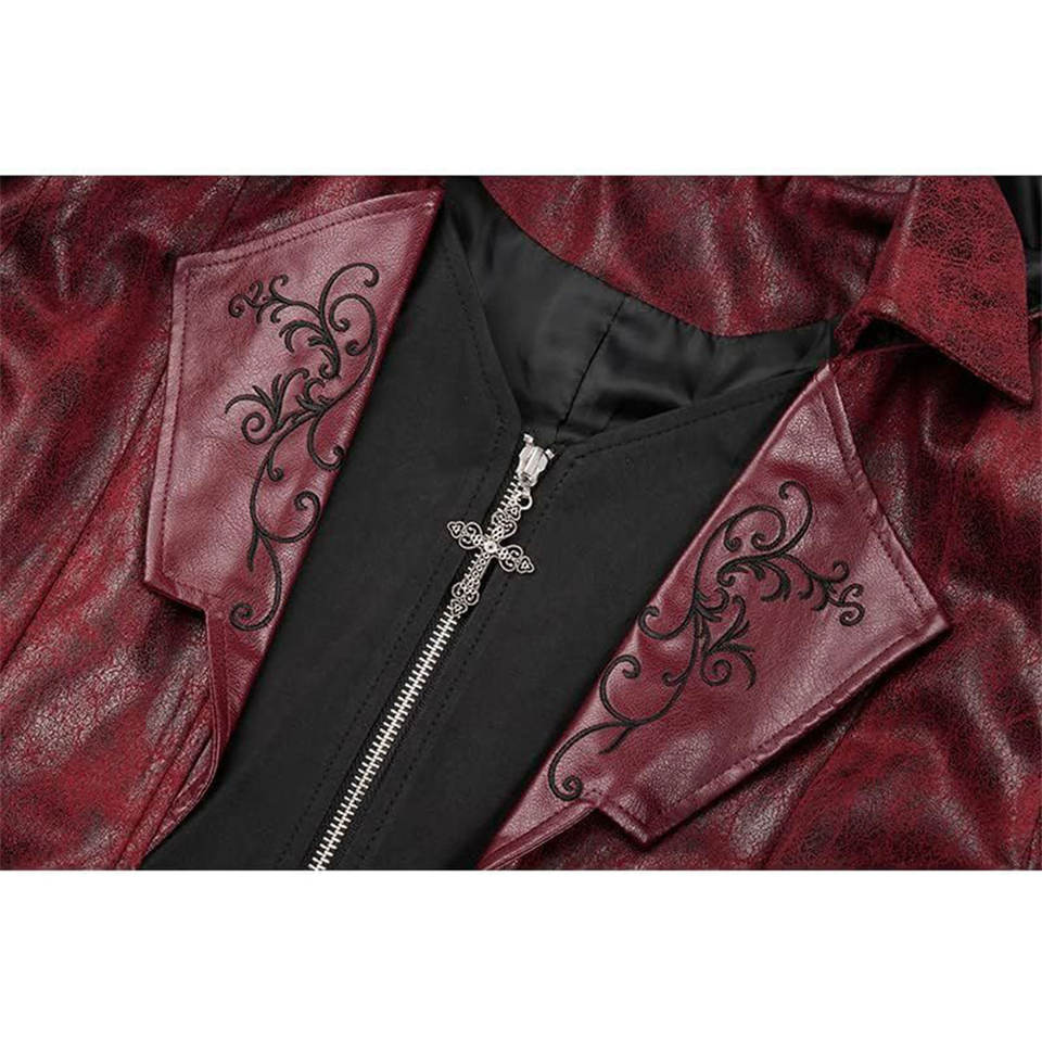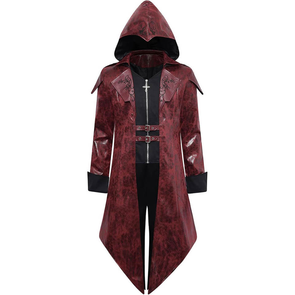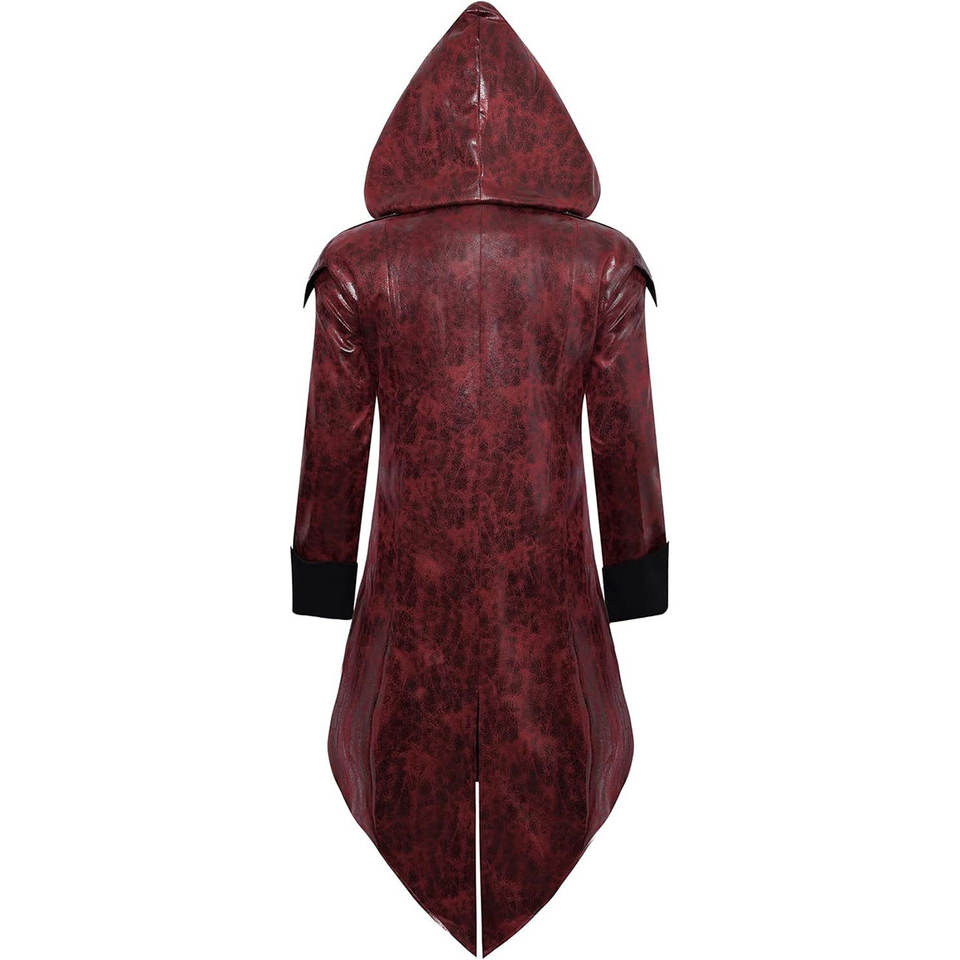 Abrigo con Capucha de PU Ajustable, Diseño Gótico Rojo de Cola de Vampiro, Chaqueta de Cuero Steampunk Medieval Victoriana 2026
