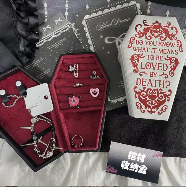 Caja de Joyería de Cuero y Terciopelo Estilo Gótico en Forma de Ataúd, Caja para Anillos, Caja de Viaje para Exhibición de Joyas, Caja de Empaque Elegante