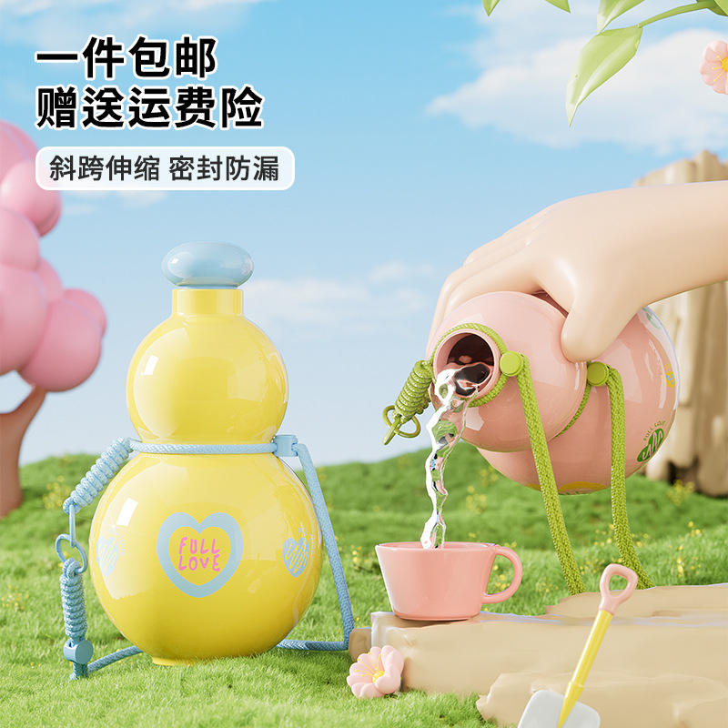 Botella de Agua Deportiva Portátil de Gran Capacidad con Diseño de Calabaza, Bonita, a Prueba de Fugas, de Grado Alimenticio, Diseño de Vientre Grande