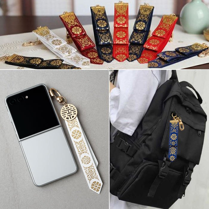 [Goyu] Llavero Tradicional Coreano con Borla de Cinta Danggi, Bordado Dorado, Material de Satén Ecológico y Duradero para Bolsos