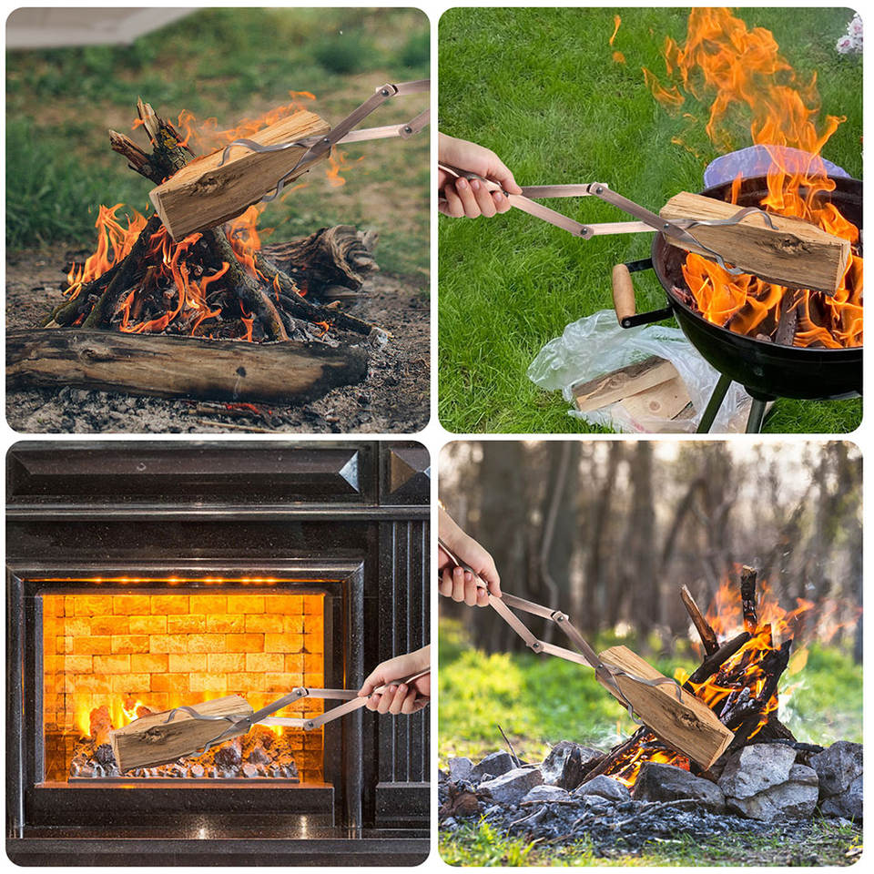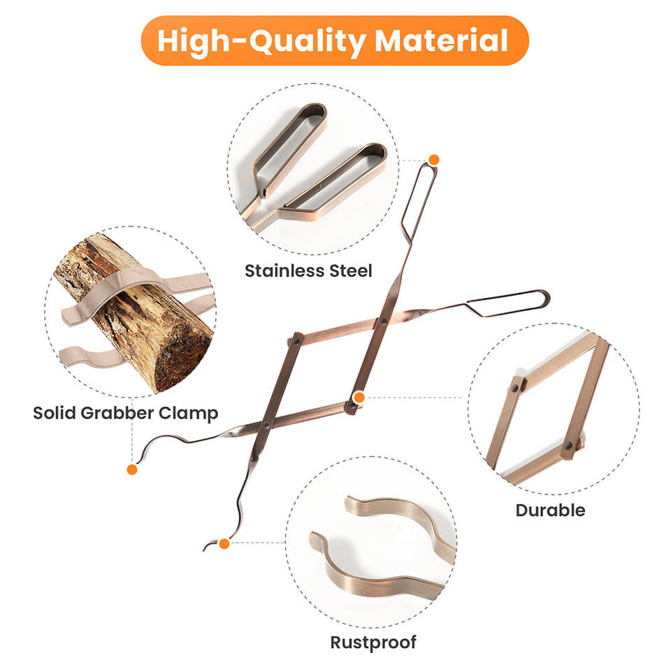 Juego de Herramientas Modernas para Fogatas de Acero Grabber, Pinzas Largas para Chimenea, Soporte para Leños, Accesorios para Fogatas