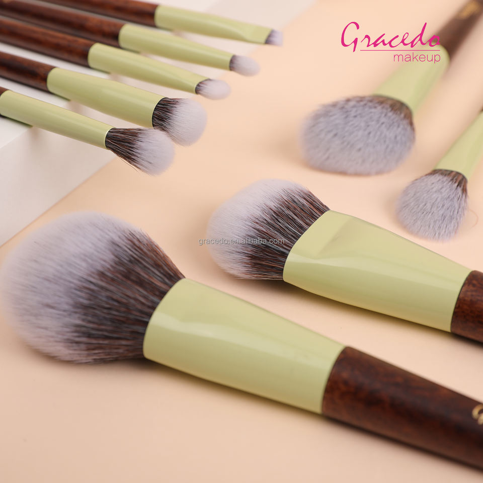 Nombre del artículo:Set de maquillaje de 9 brochas con textura de madera