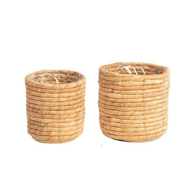 Elegante jardinera de jacinto de agua de ratán circular tejida a mano, elegante decoración interior para el hogar, cestas de almacenamiento de vida sostenible de Vietnam