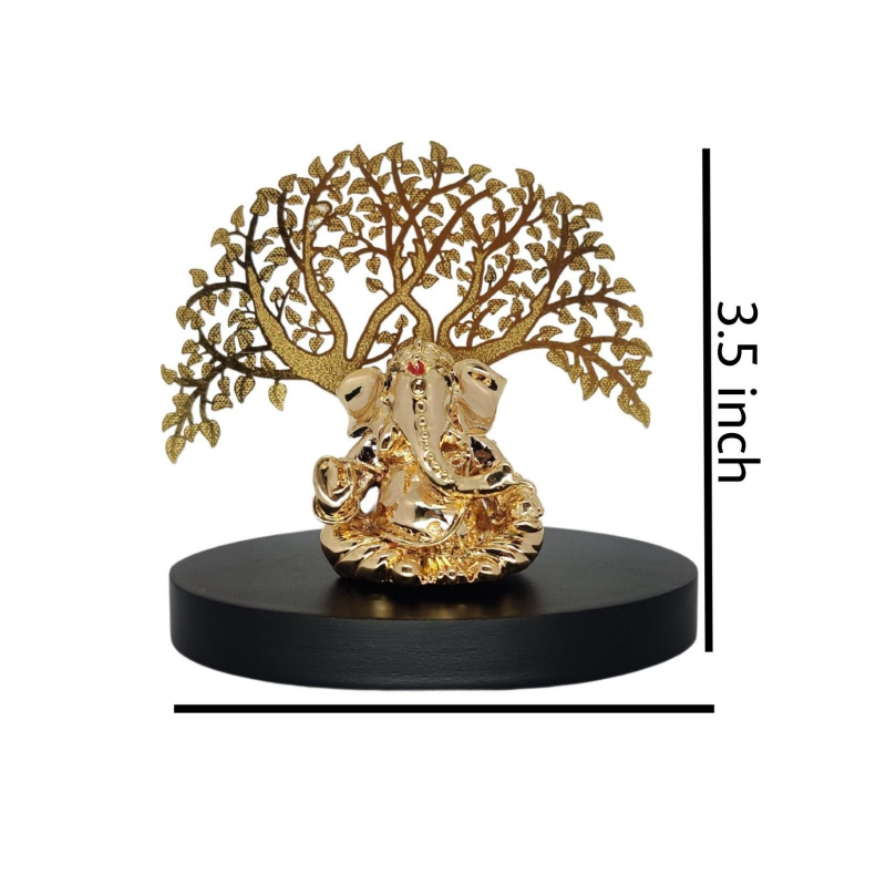 Graceful Lord Ganesh Idol estatua sentado Metal dorado árbol artesanal tamaño pequeño hogar templo decoración Puja habitación boda acero inoxidable