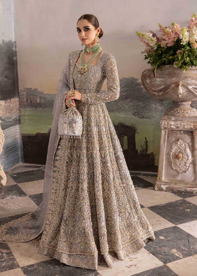 Elegante Vestido de Novia Pakistaní Moderno con Cristales, Volantes, Adornos de Encaje, Bordado Artesanal de Primera Calidad, Color en Contraste