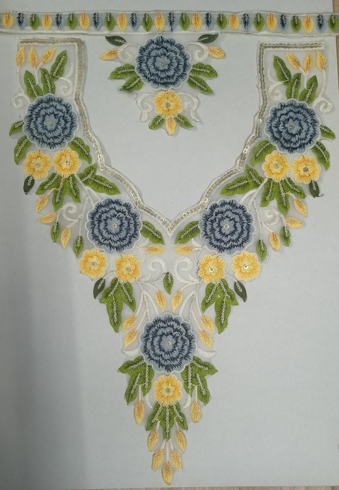 Elegante encaje de cuello de red con hilo y bordado de lentejuelas para saris, vestidos, blusas, Kurtis y decoración de escote de disfraces