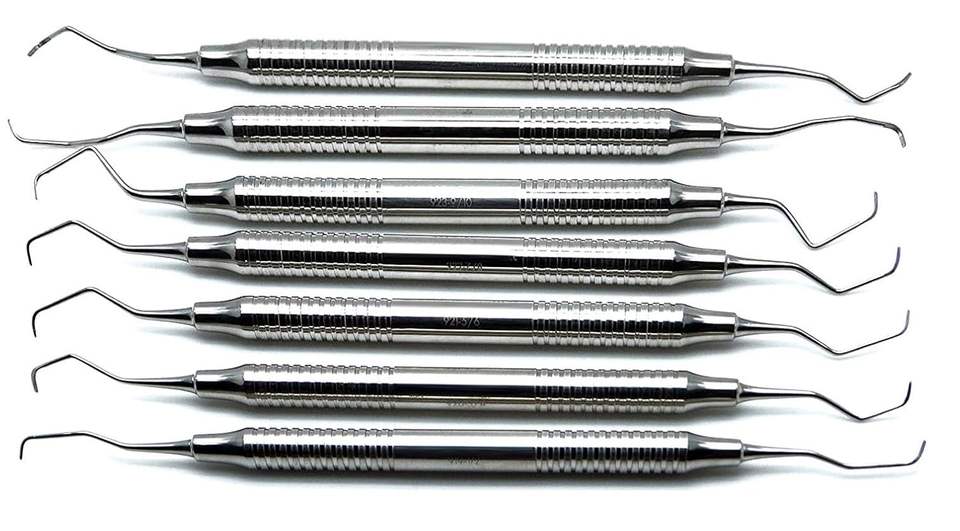 Juego de 7 instrumentos quirúrgicos dentales de clase I Gracey con curetas de mango hueco