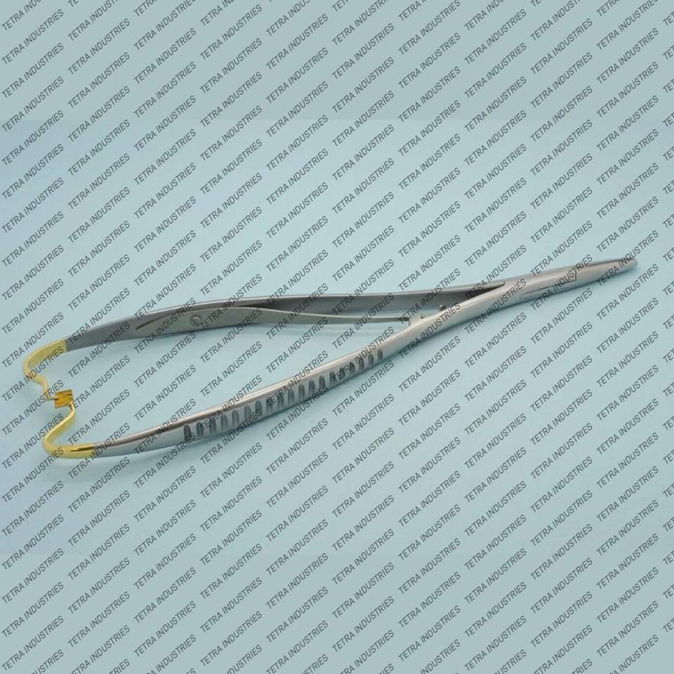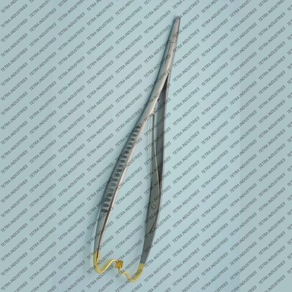 Portaagujas Mathieu de Grado TC, 8 Pulgadas, Mandíbulas Serradas, Acero Inoxidable, Instrumentos Quirúrgicos Dentales Manuales, Clase I CE
