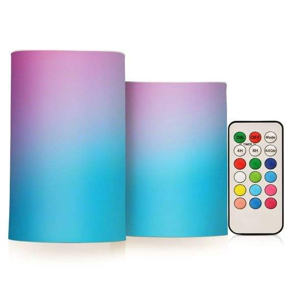 Velas LED sin Llama con Efecto de Llama Parpadeante en Azul Degradado, Juego de 2 Piezas con Control Remoto y Temporizador, Funcionan con Pilas, para Iluminación de Fiestas