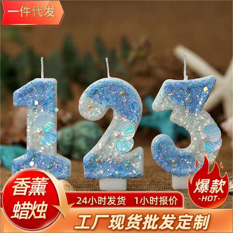 Vela Numérica Azul Degradado con Concha MarinaNúmero de pieza