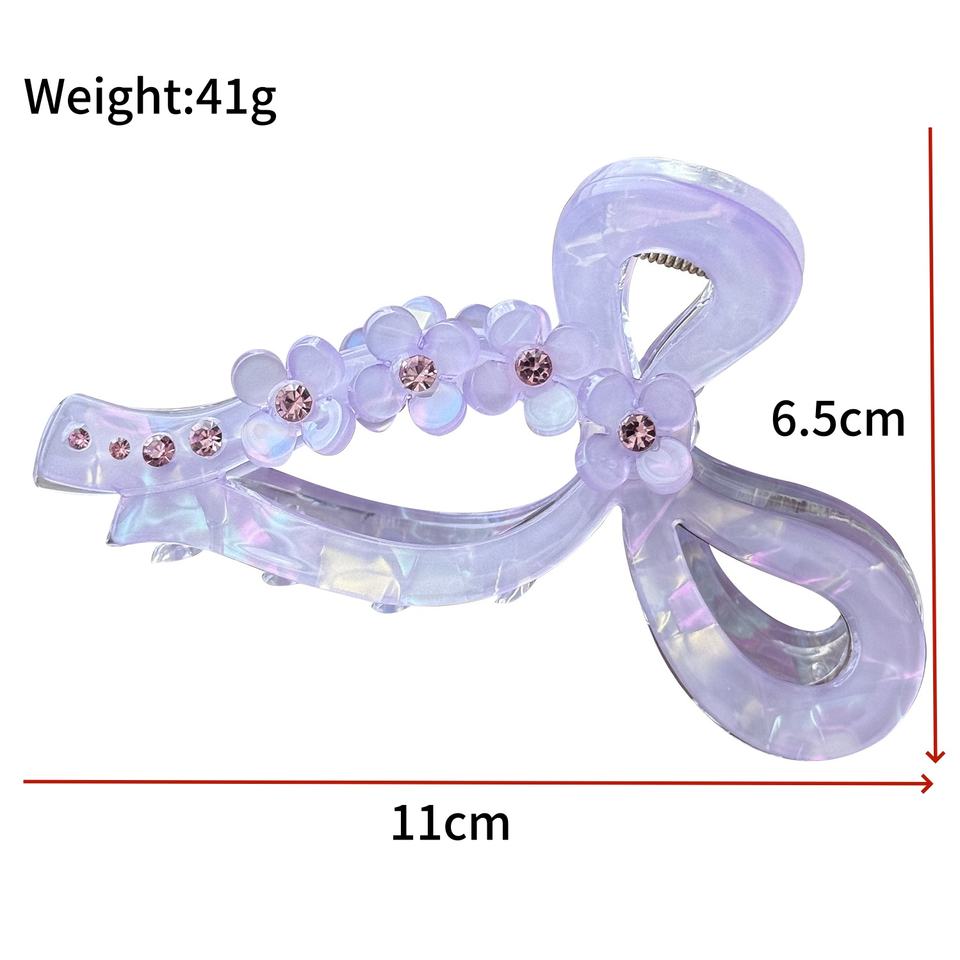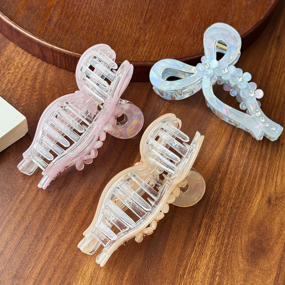 Pinza de Pelo con Lazo Degradado y Diamantes de Imitación, Flor Tridimensional Pequeña, Clip Grande de Acrílico, Pinza de Plástico Tipo Tiburón