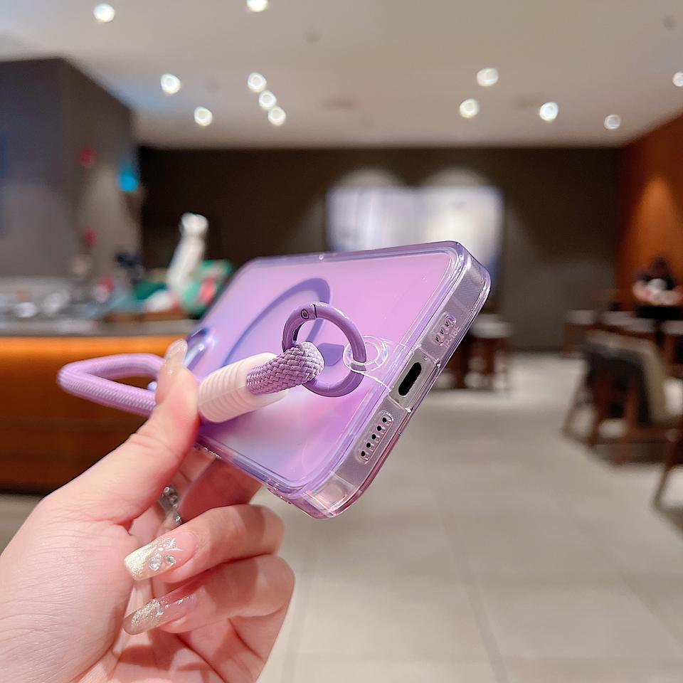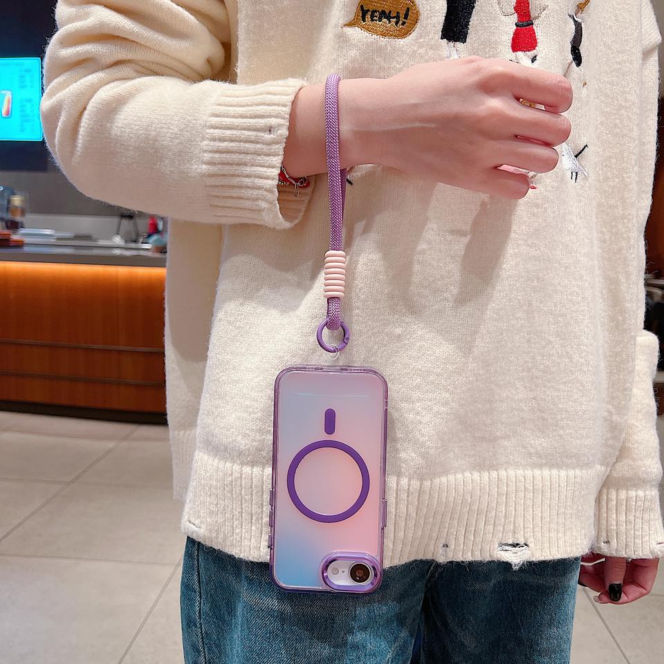 Estuche translúcido colorido degradado para IPhone 12 13 14 15 16 Pro Max 16E Carga inalámbrica Cubierta de cuerda colgante magnética fuerte