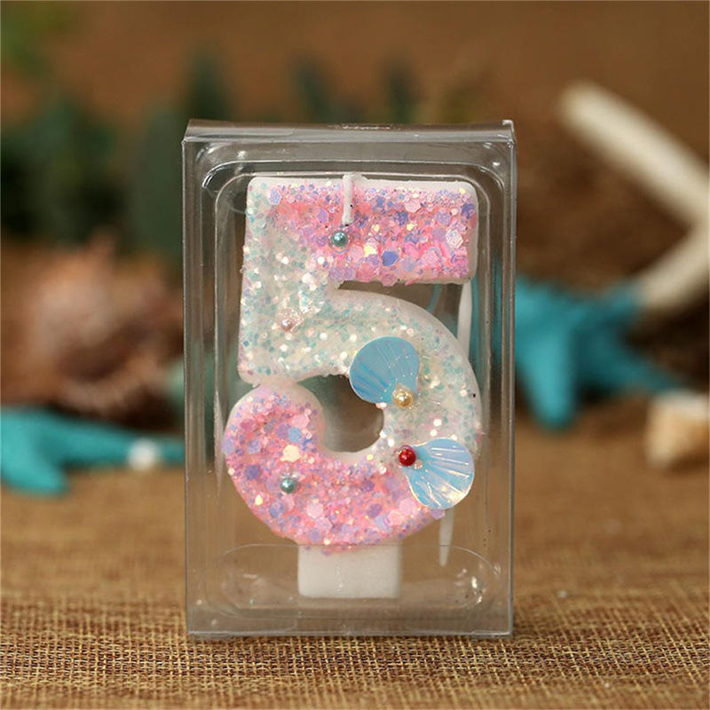 Velas de Cumpleaños con Números, Diseño Degradado Rosa con Conchas MarinasNúmero de pieza