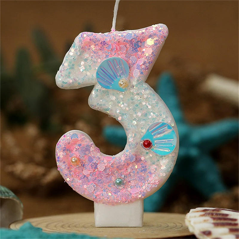 Velas de número con forma de concha marina en degradado rosa (3)