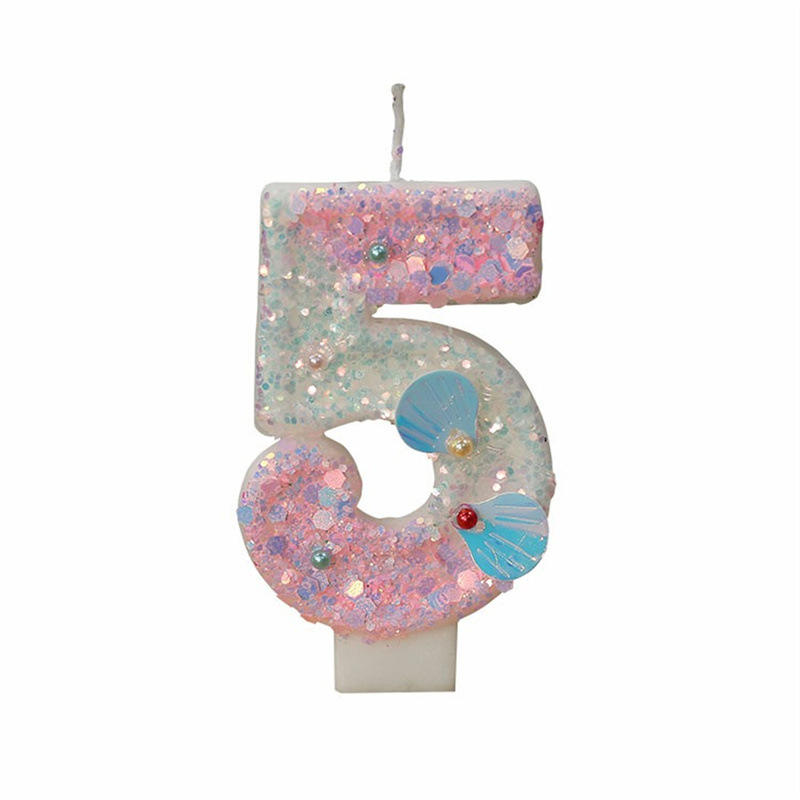 Velas de número con forma de concha marina en degradado rosa (5)