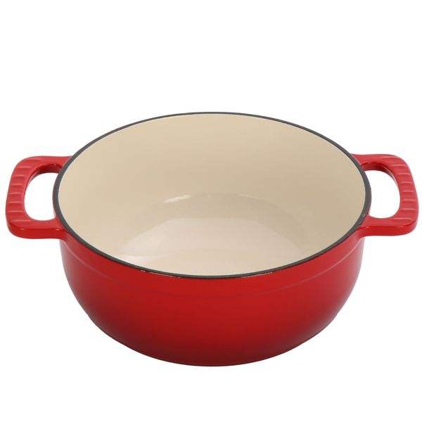 Olla de Hierro Fundido Roja Degradada de 7.5QT con Dos Guantes de Silicona, Olla de Cocina Esmaltada