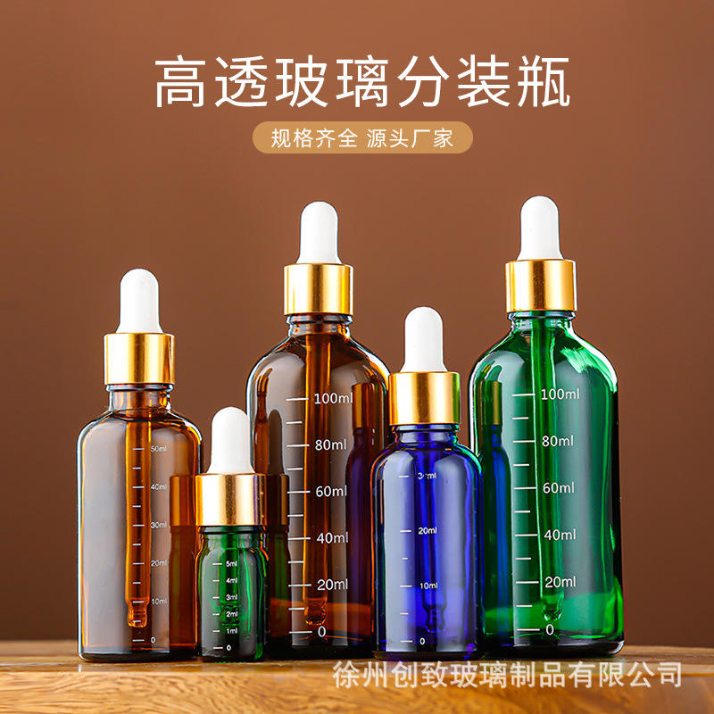 Botella de vidrio con gotero para aceites esenciales graduada de 50 ml con gotero para suero, esencia para el cuidado de la piel, botella portátil para muestras cosméticas