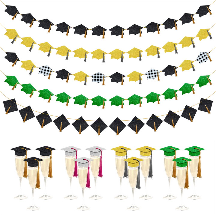Guirnalda de Decoración para Gorro de Graduación, Clase de 2026, Artículos para Fiesta de Graduación, Pancarta con Gorros de Graduación, Mini Gorros de Graduación con Borlas