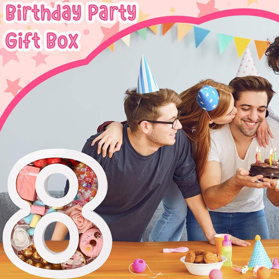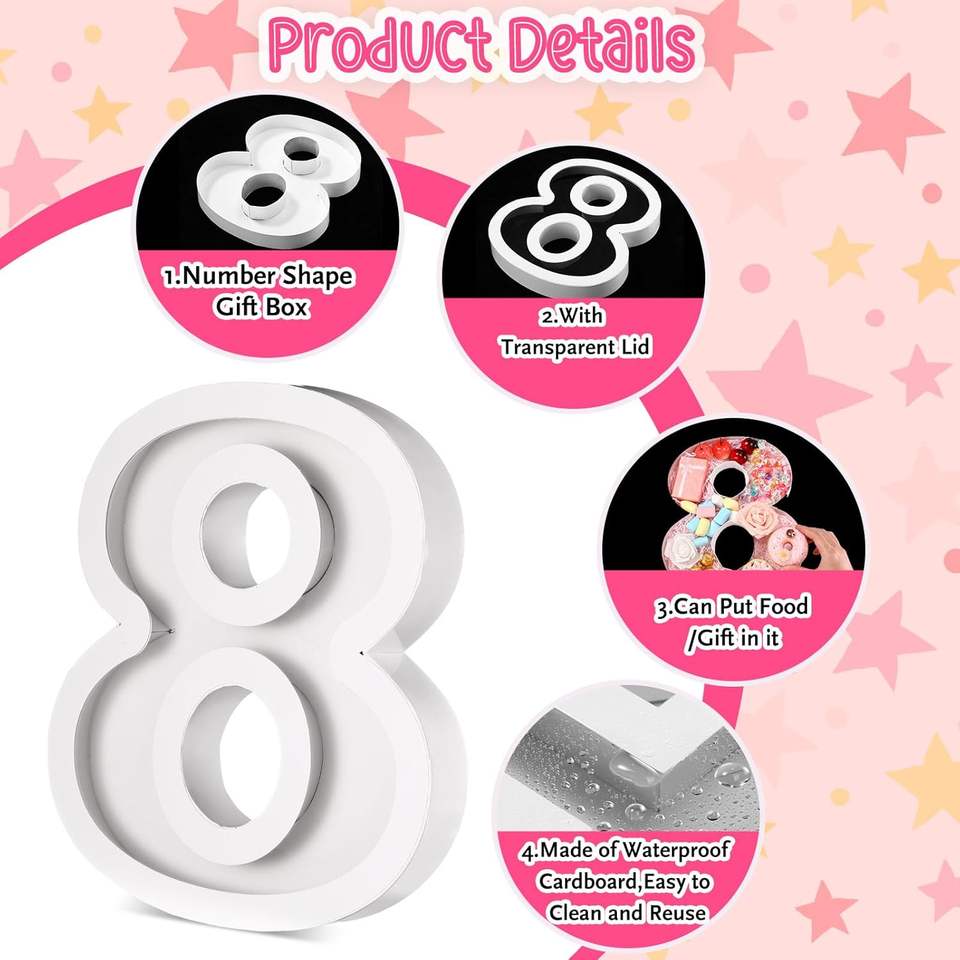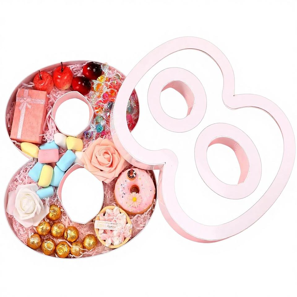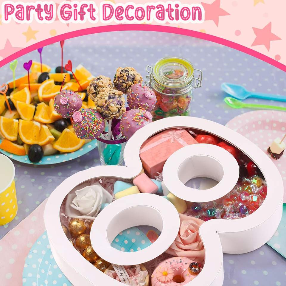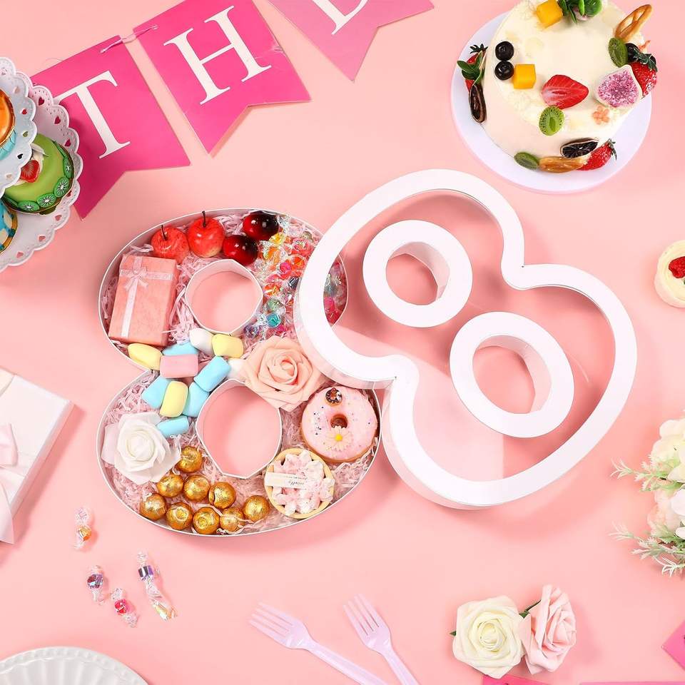 Caja de Cartón con Forma de Número 8 para Graduación, Bandeja para Servir Rellenable con Tapa Transparente, Apta para Alimentos, para Bodas/Cumpleaños