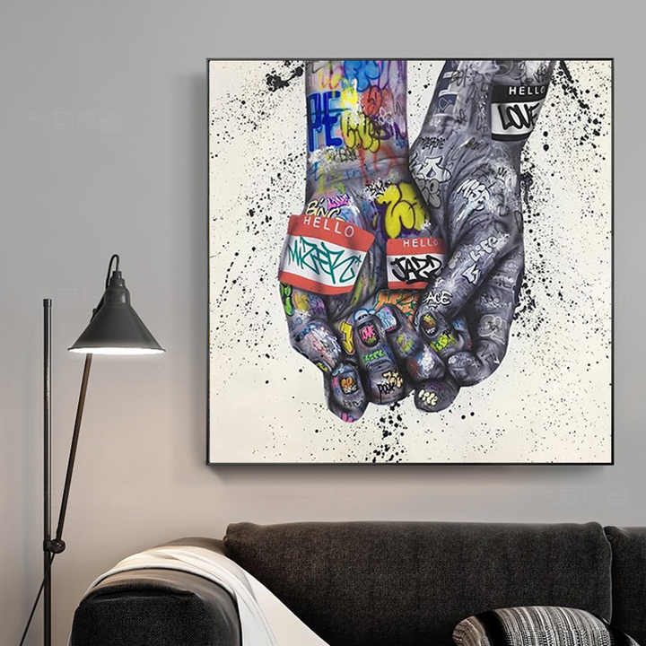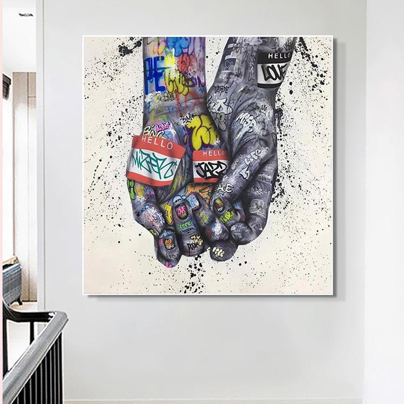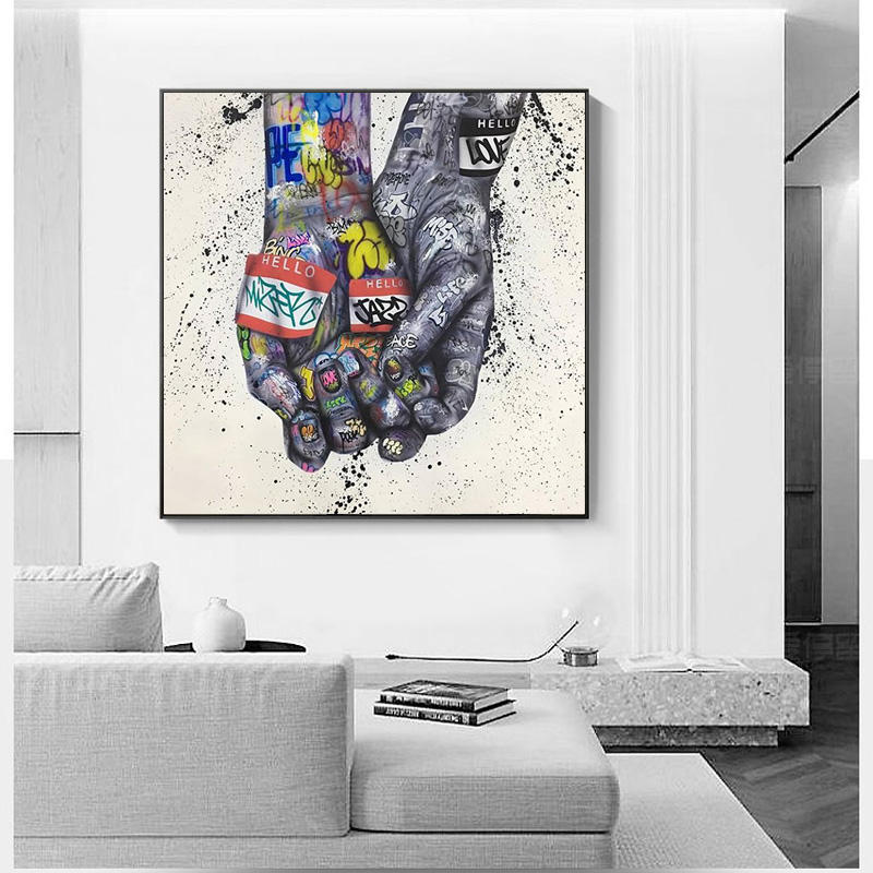 Arte Mural con Graffiti 'Vamos de Mano, Unímonos', Cuadros Motivacionales para Decoración del Hogar, Oficina o Habitación, Pintura en Lienzo