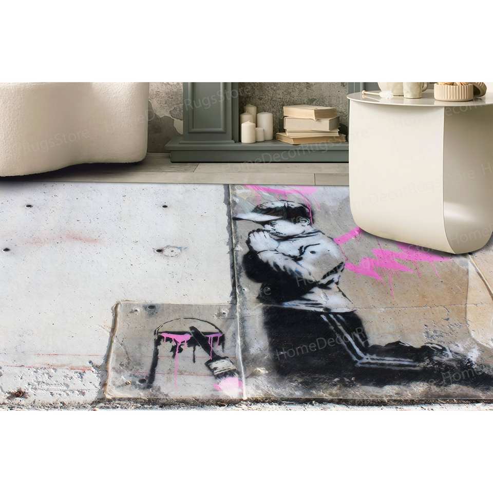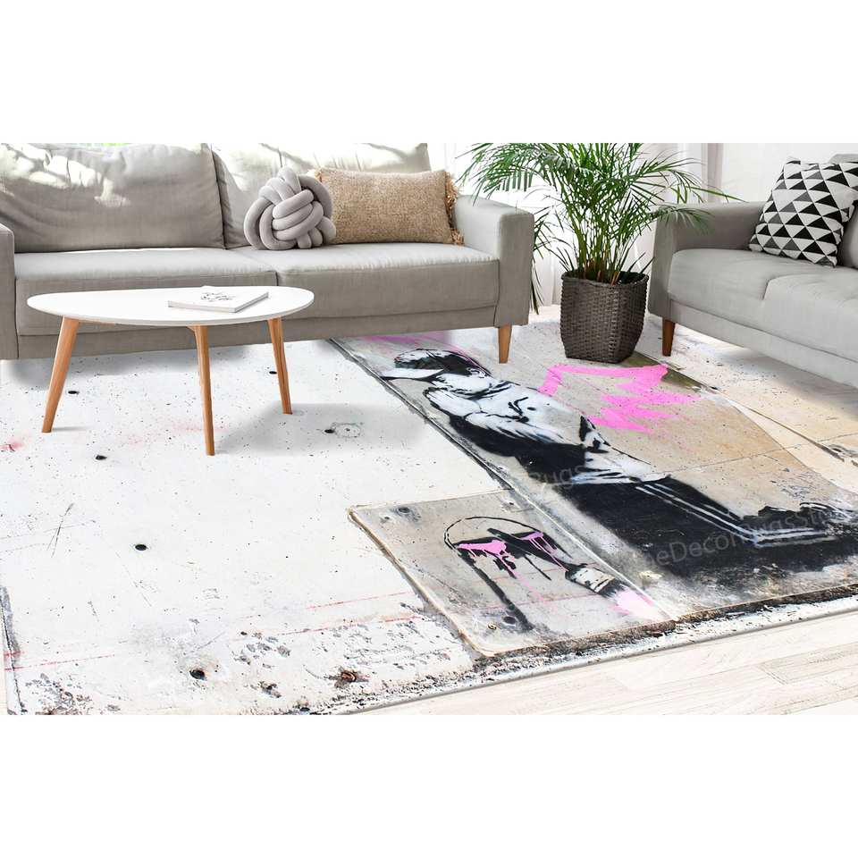 Alfombra con Estampado de Grafiti: Ángel de Banksy, Arte Callejero, Decoración Moderna, Alfombra Delgada No Tejida