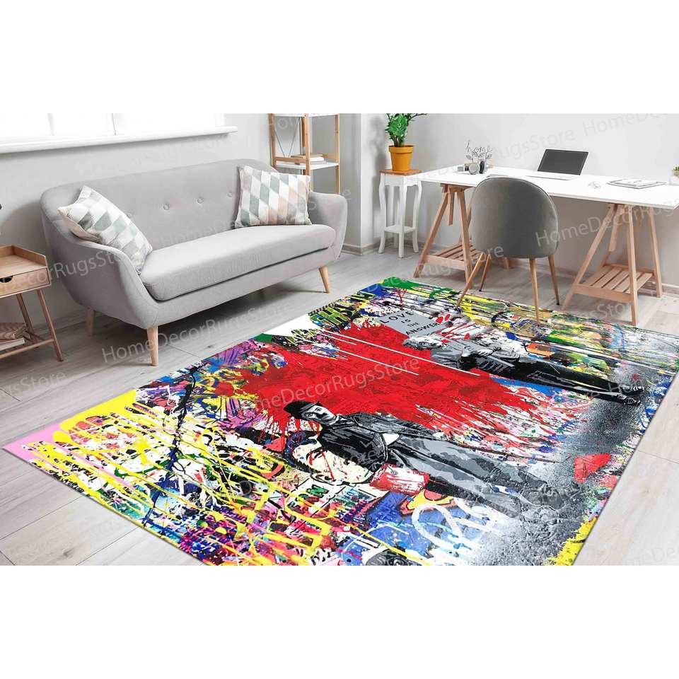 Alfombra con Estampado de Grafiti: Antideslizante, Arte Callejero, Diseño de Banksy Chaplin, Alfombra de Terciopelo de Lujo