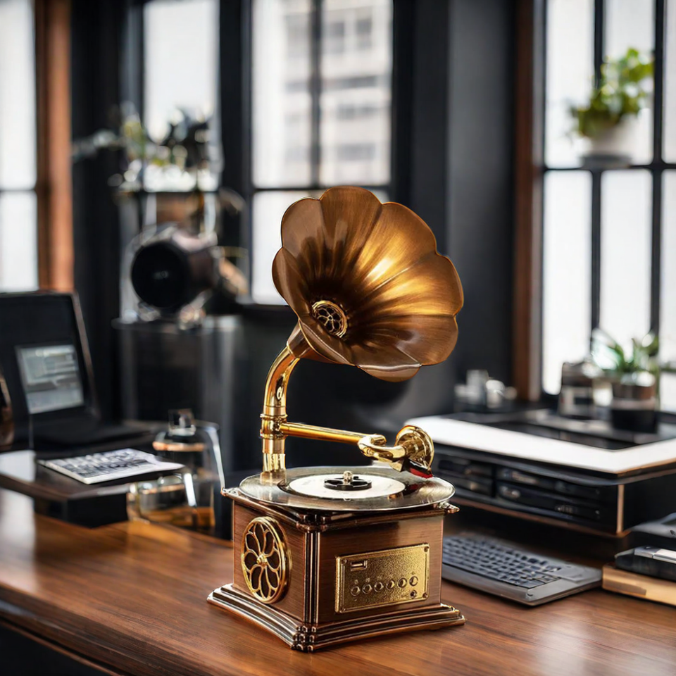 Tocadiscos de Vinilo USB Clásico con Radio Retro y Mini Gramófono de Metal