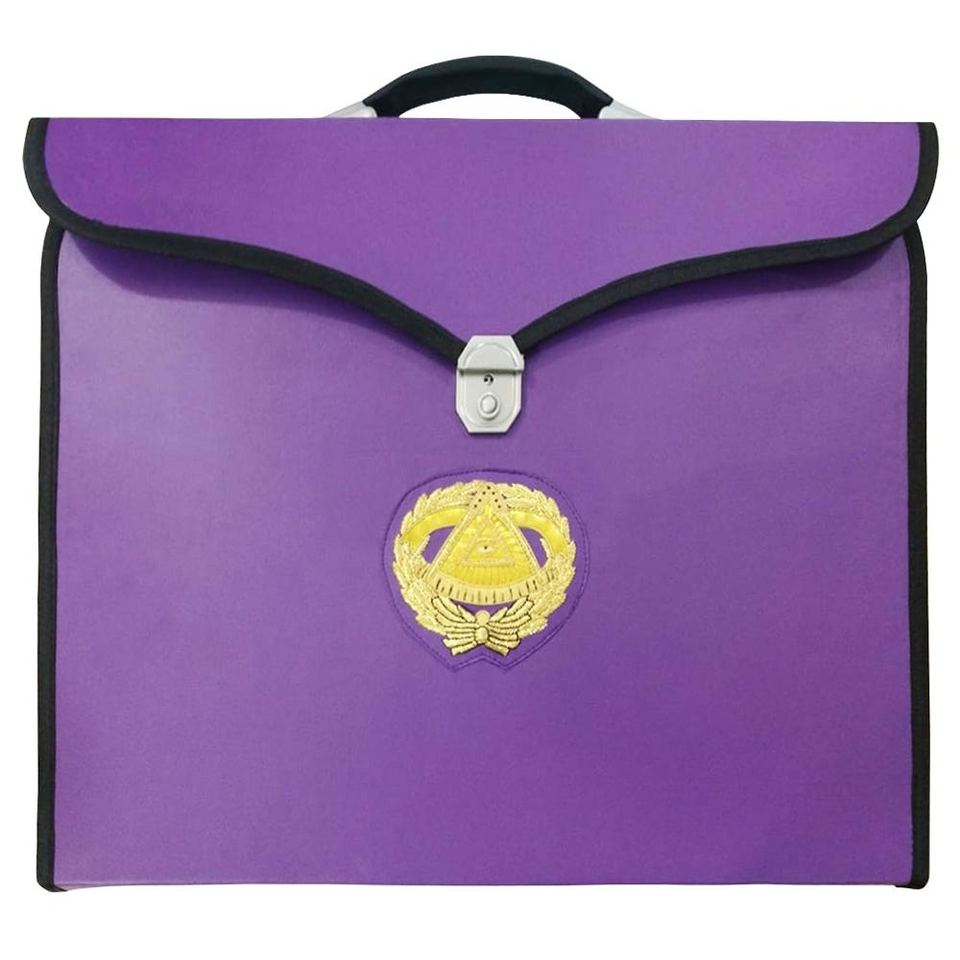 Estuche para delantal Grand Master Blue Lodge Cuero púrpura MM, WM y estuche masónico versátil provincial con material de excelente calidad