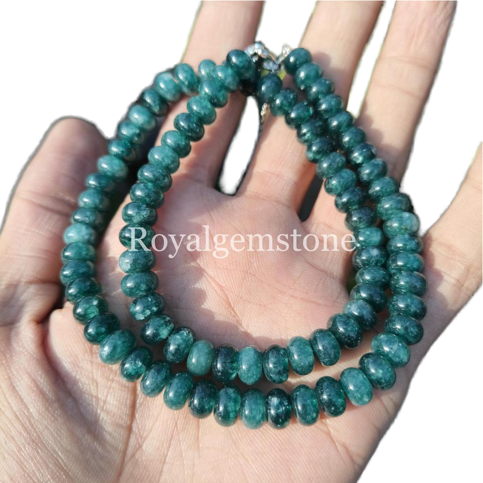 Collar de Plata de Ley con Cuentas de Granidierita, Cuentas Redondas de 8 mm, Piedras Preciosas Raras de Color Verde Azulado, Estilo Bohemio y Hippie, Regalo Unisex