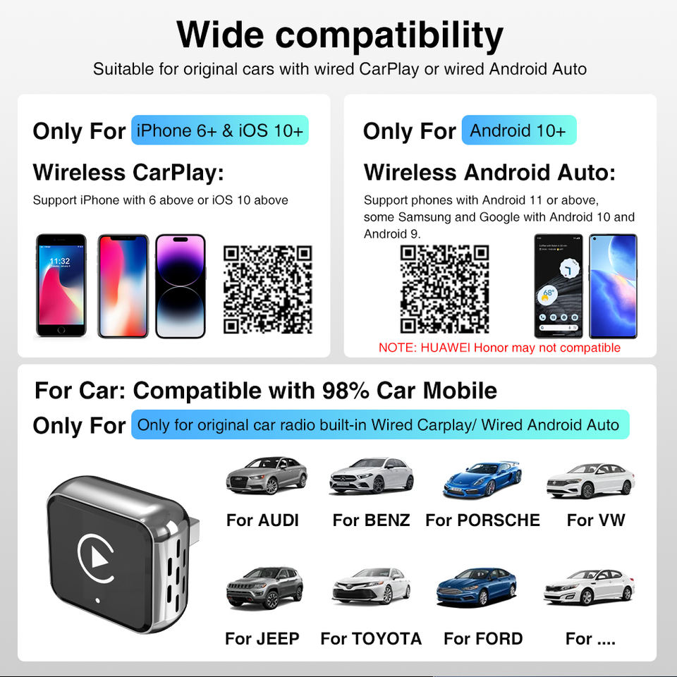 Function:Wired to Wireless CarPlay android auto wireless airplay