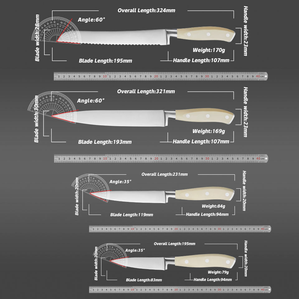 Juego de cuchillos de cocina Grandsharp de metal, acero inoxidable de alto carbono, incluye cuchillo para pan, rebanador, pelador y para filetear, mango ABS