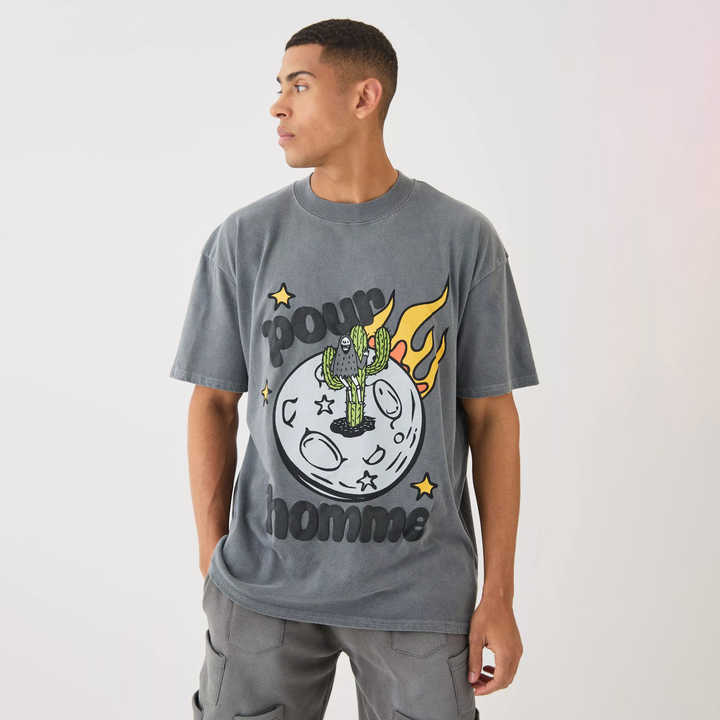 Camiseta gráfica Streetwear Hip Hop peso pesado estampado mixto emoción de lujo Casual tejido 100% algodón hombres frente secado rápido