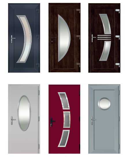Puerta de Sistema de PVC Gris Grafito con Vidrio Esmerilado Redondo y un Toque de Diseño Industrial Moderno
