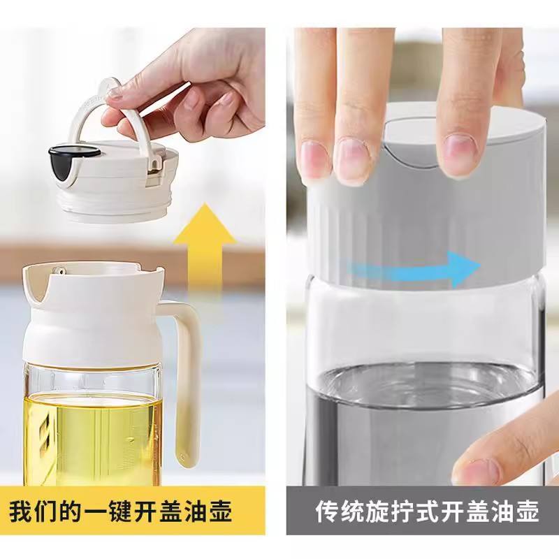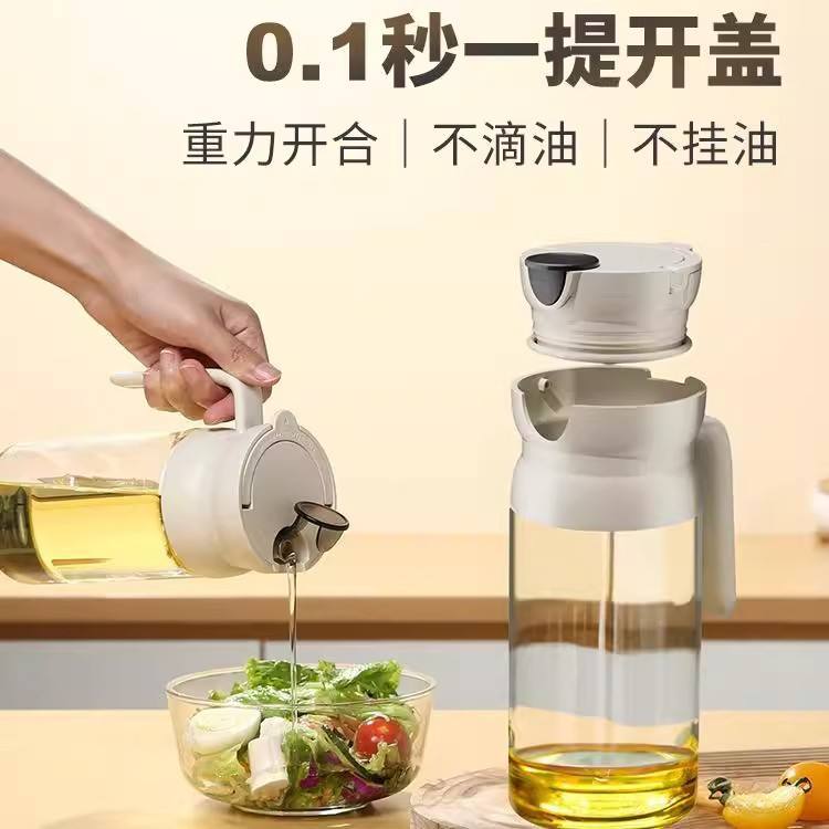 Recipiente de vidrio para aceite Gravity con tapa de plástico, resistente a fugas, para uso en la cocina, tamaño L