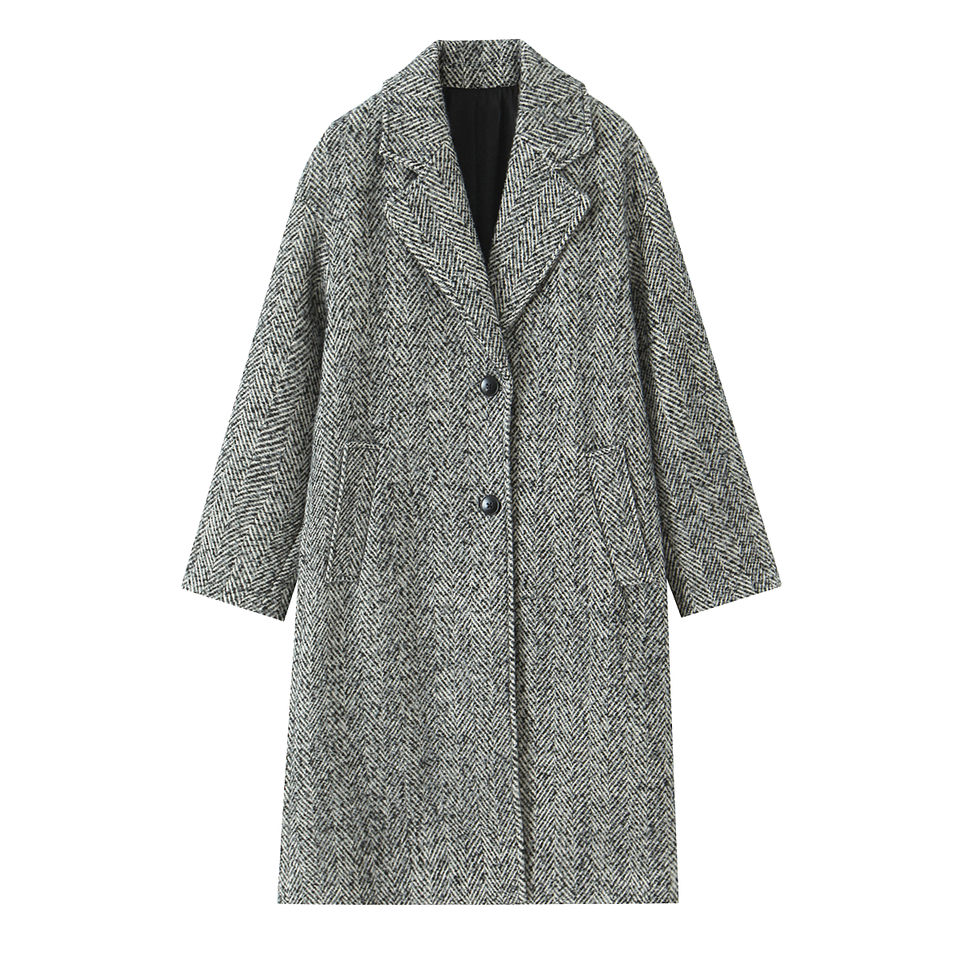 Abrigo Largo Informal de Manga Larga con Cuello de Solapa y Botones, Color Gris Otoñal, Tejido de Poliéster, para Mujer