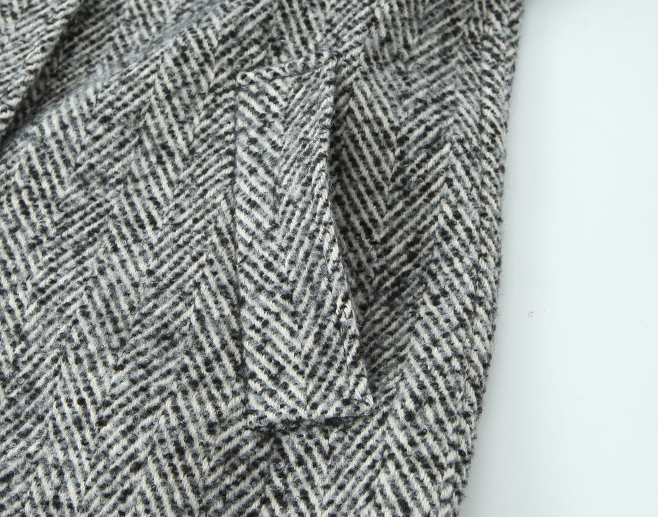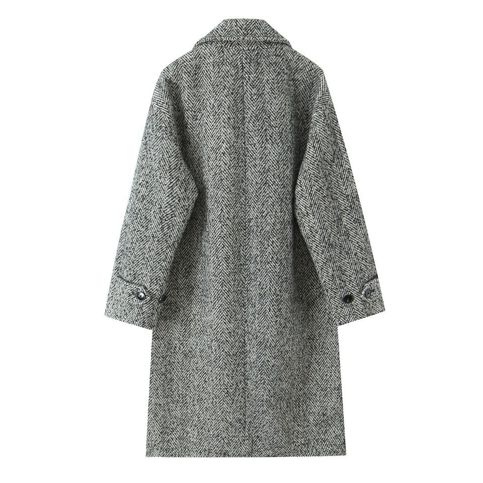 Abrigo Largo Informal de Manga Larga con Cuello de Solapa y Botones, Color Gris Otoñal, Tejido de Poliéster, para Mujer