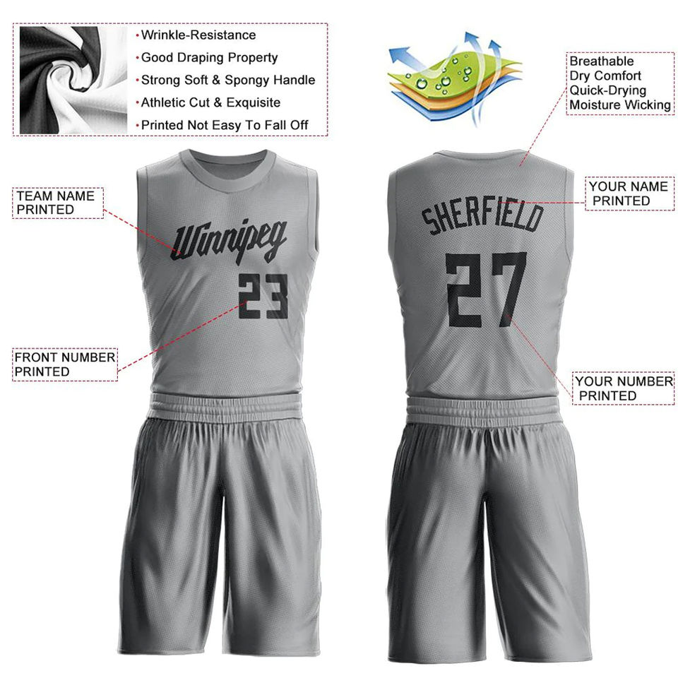 Conjunto de Uniforme de Baloncesto Color Gris, Logotipo Serigrafiado, Sin Mangas, Transpirable, Antibacteriano, Secado Rápido, Talla Grande, Equipo de Club, OEM
