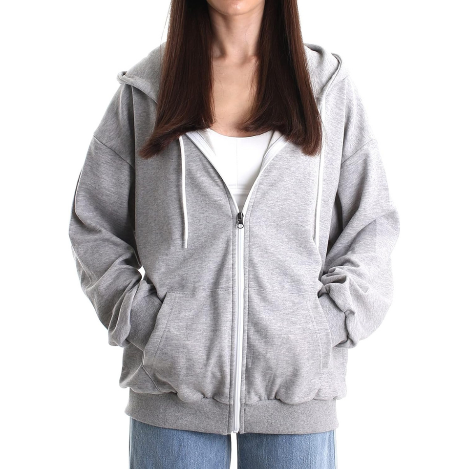 Diseño de logotipo personalizado gris Cremallera completa Baggy Oversized 100% algodón Anti Arrugas Drop Shoulder Hoodies para mujer