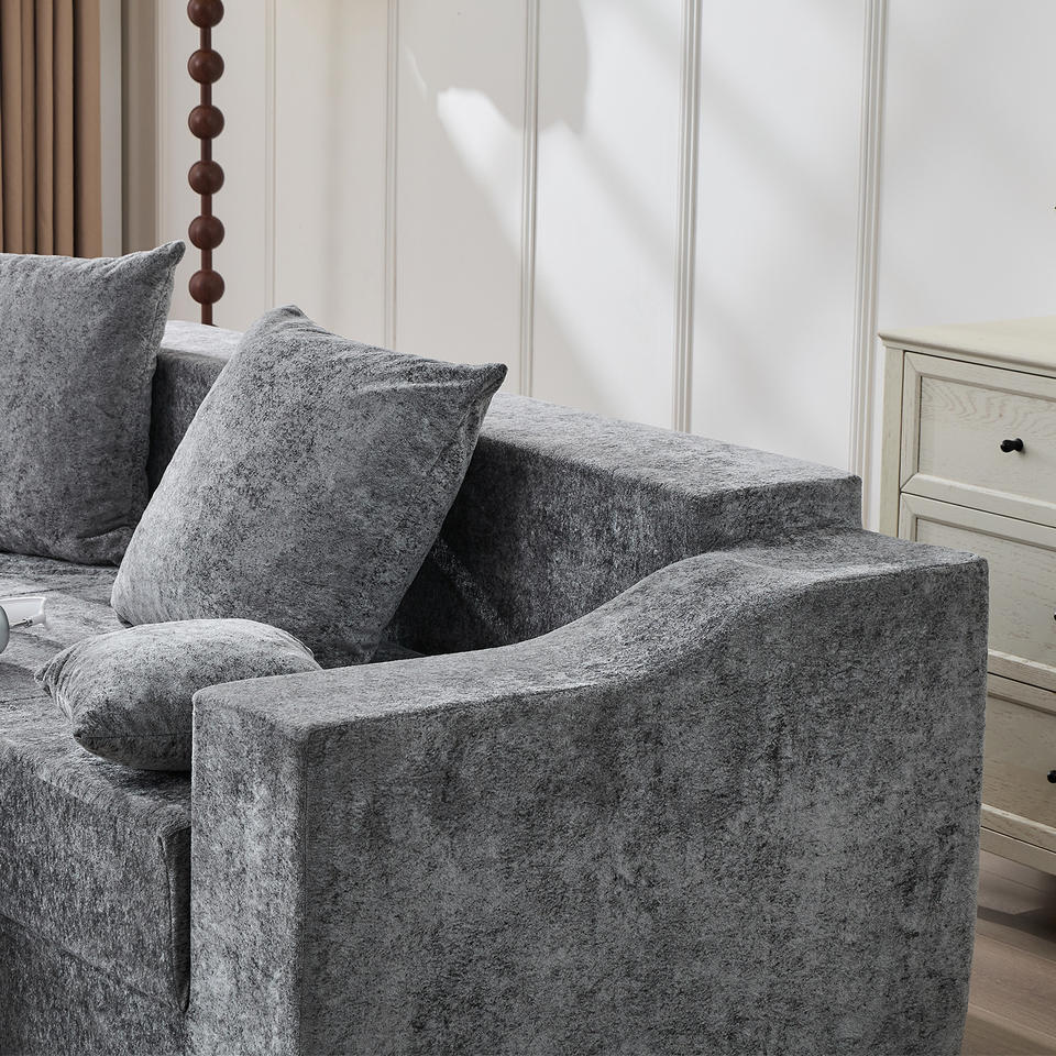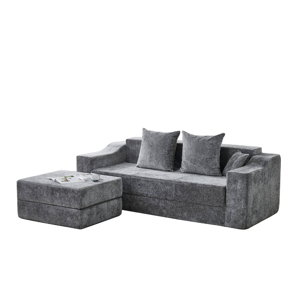 Sofá Cama Modular Gris con Otomana, Relleno de Espuma, Patrones Abstractos, Muebles Cuadrados para Sala de Estar, para Apartamentos Pequeños