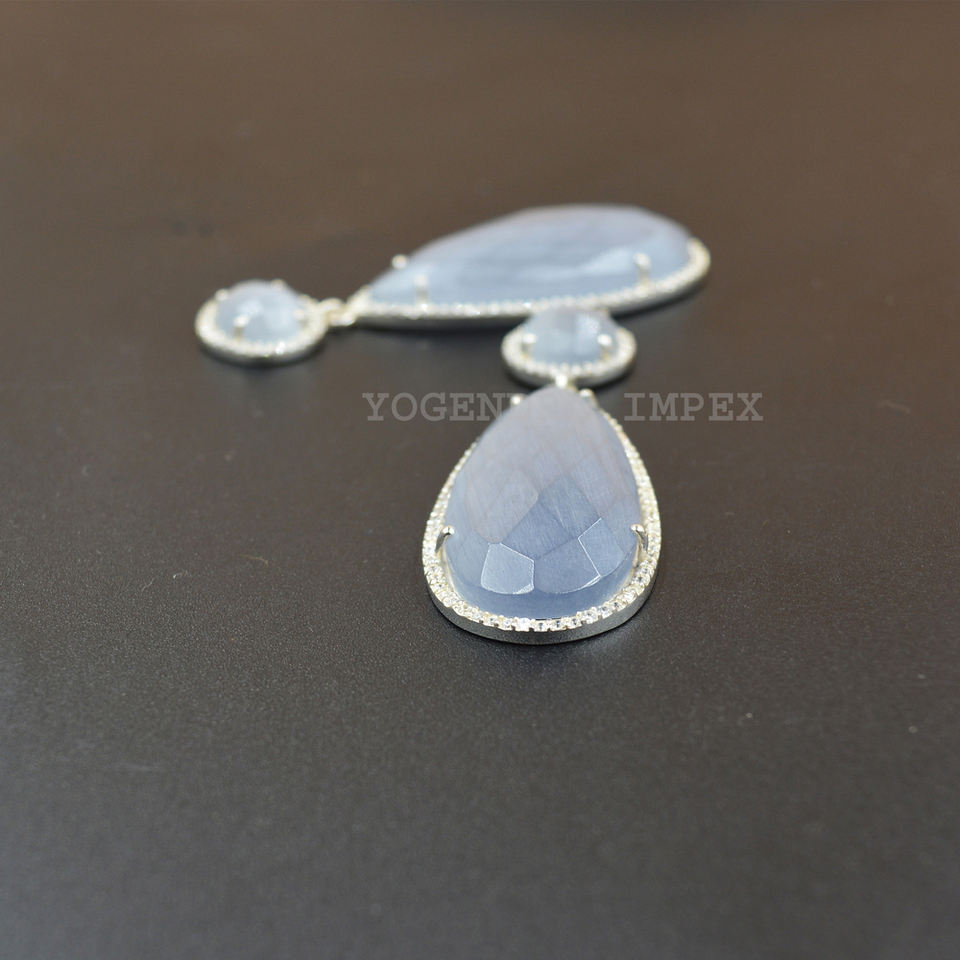 Monalisa gris con piedras preciosas CZ, pendientes de plata de ley 925 chapados en plata, Pendientes colgantes, joyería CZ para suministro