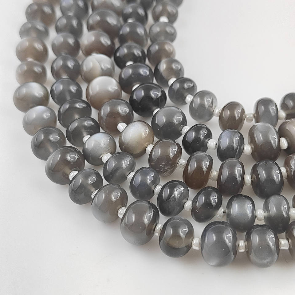 Cuentas Redondas Lisas de Piedra Lunar Gris de 6-7 mm para la Elaboración de Joyas, Cuentas Redondas de Piedra Lunar Gris, 20-22 Cuentas en una Hebra de 8 Pulgadas