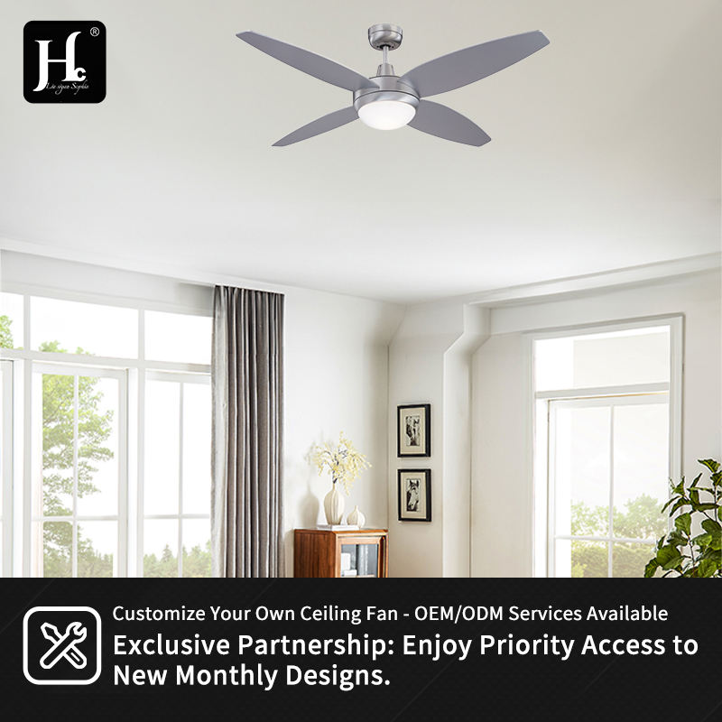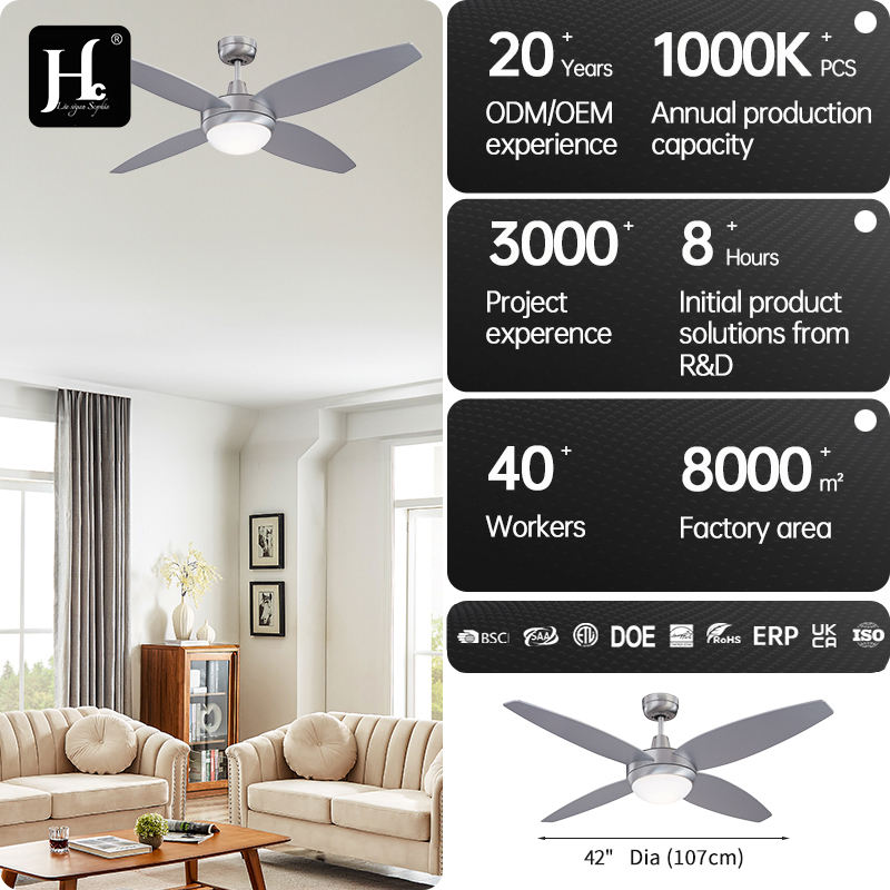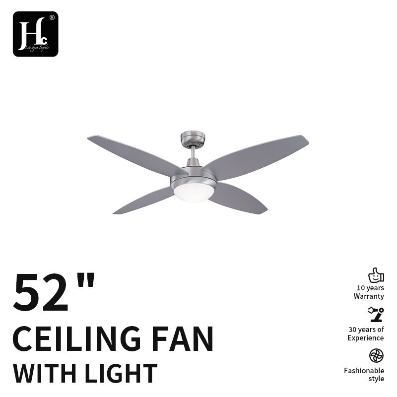 Ventilador de techo para exteriores gris con luz, ventilador moderno de 52 pulgadas con motor de CC reversible, adecuado para patio y dormitorio