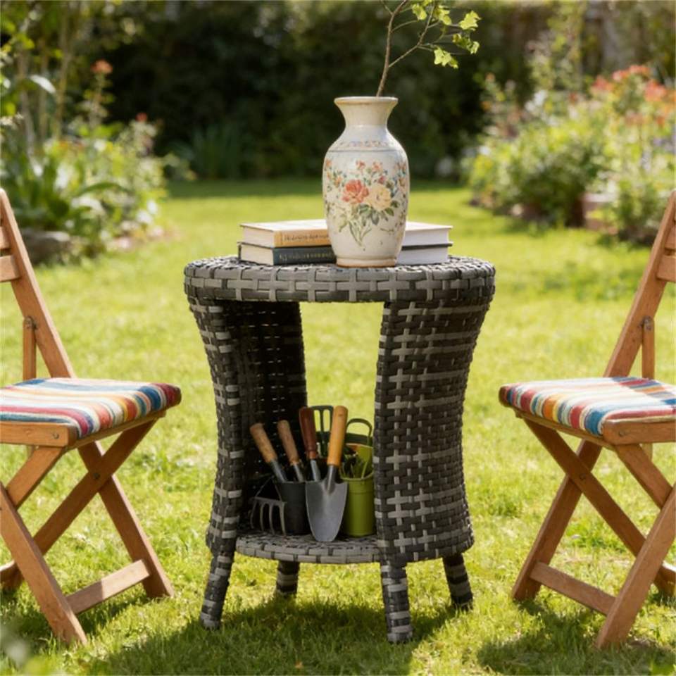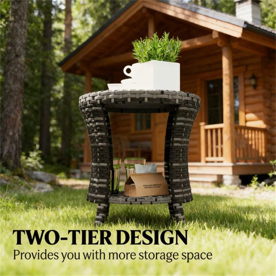 Mesa de Centro Gris para Exteriores, Mesa Auxiliar para Terraza o Jardín (Solo Mesa)