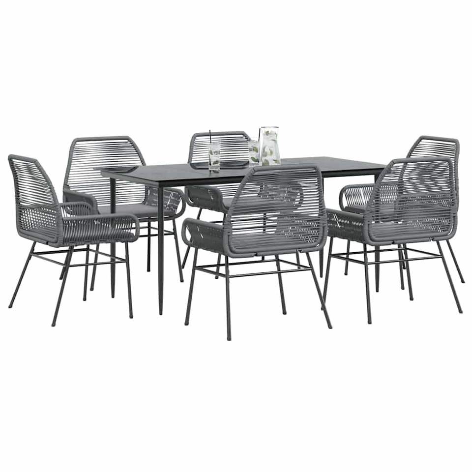 Conjunto de Comedor de Jardín de Ratán PE Gris con Fundas Extraíbles Estándar
